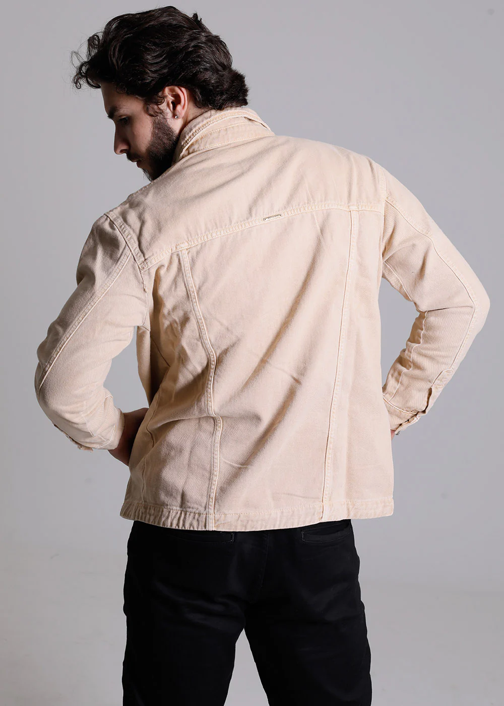 Jaqueta confeccionada em sarja. Modelagem versĂĄtil e atemporal.